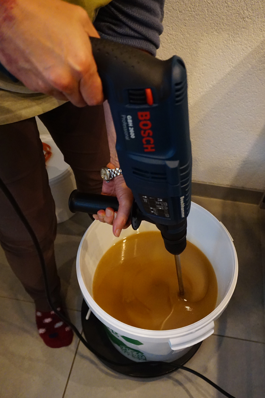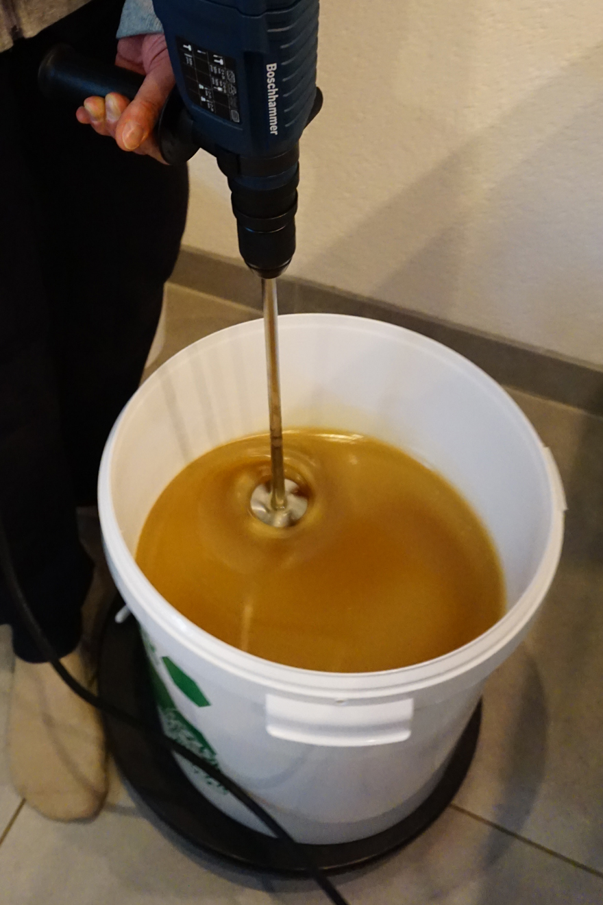 Als Rührgerät benutzen wir einen Rührer aus dem Imkereibedarf